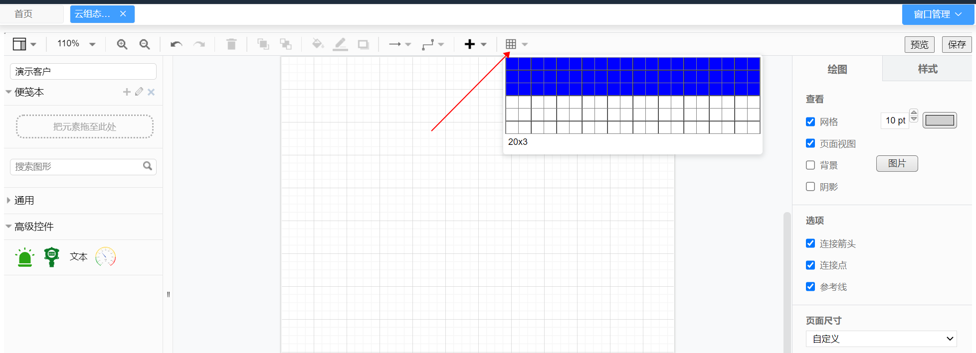 - 点击顶部工具栏的表格图标,然后拖动鼠标可以选择自己需要的表格大小(行数和列数)