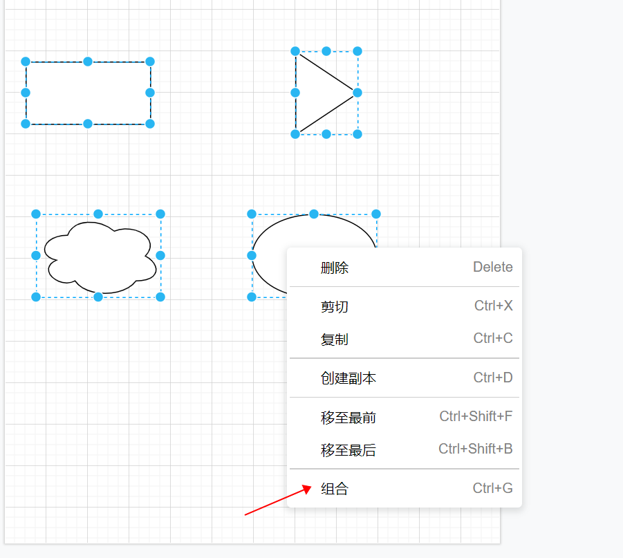 - 同时选中多个元素,在元素上点击鼠标右键,再点击组合即可组合成一个元素。如需取消可点击鼠标右键取消组合。
