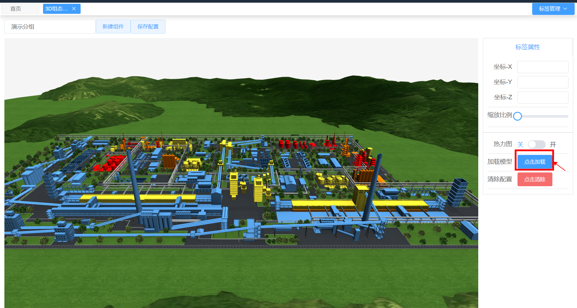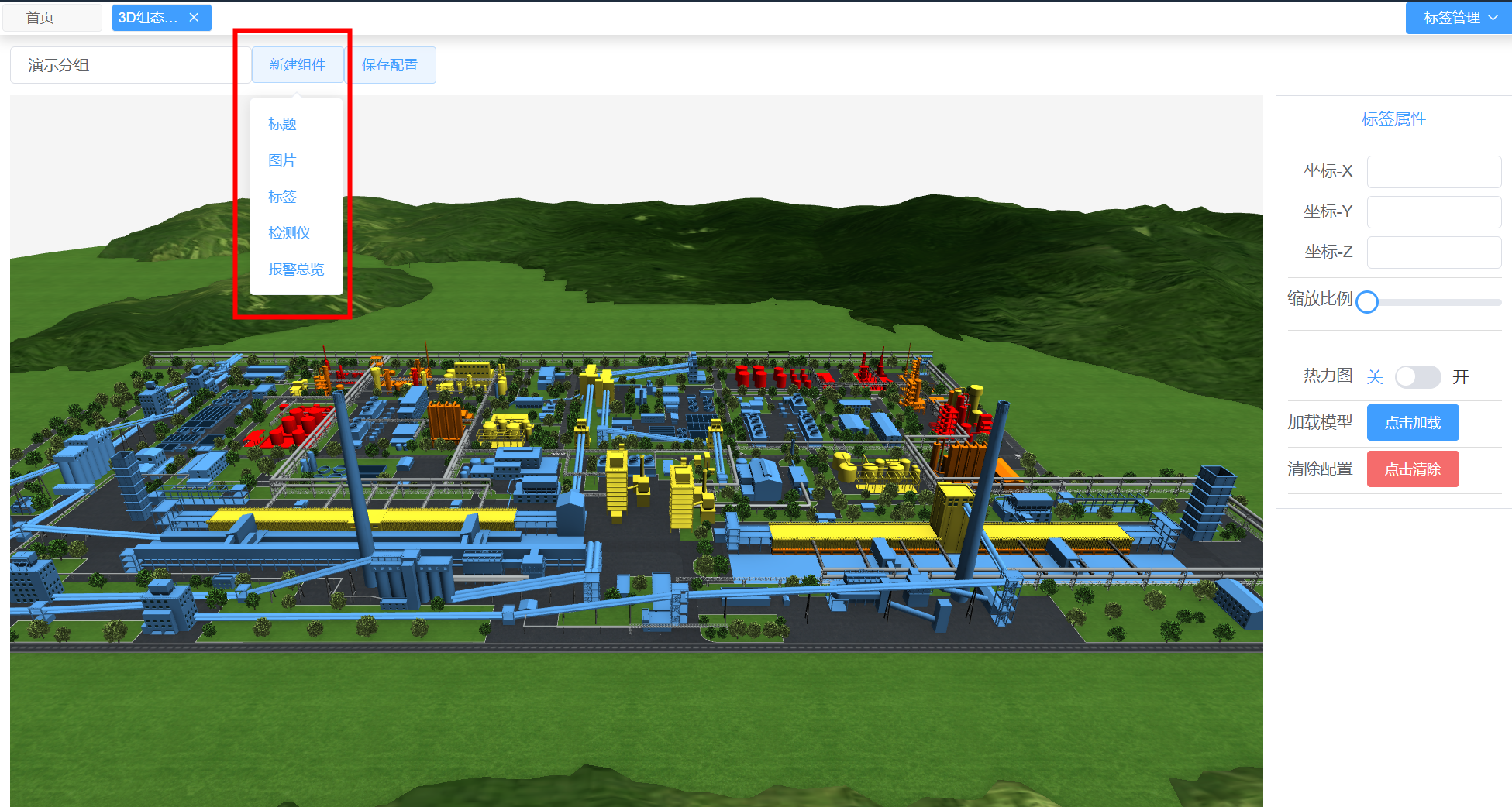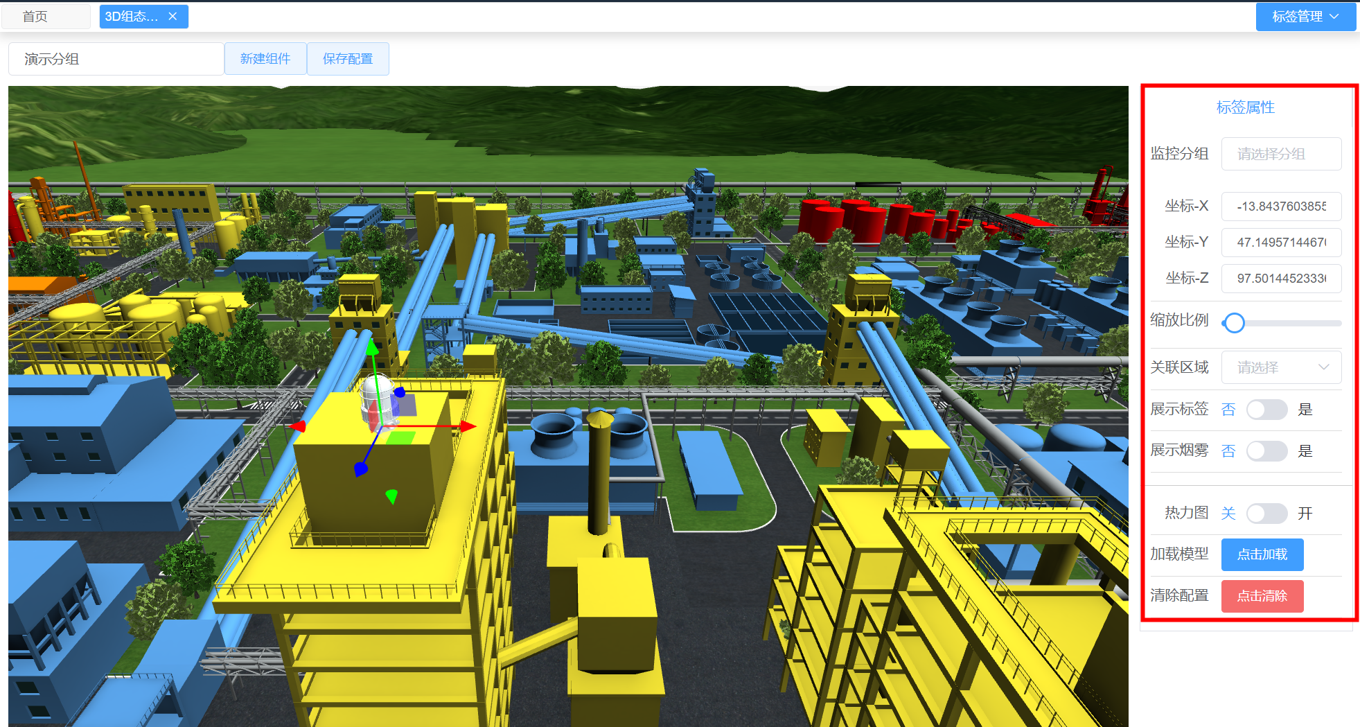 - 展示标签:是否在监控中心-3D组态页面展示顶部分组标签