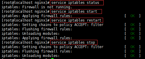 关闭防火墙[root@localhost ~]# service iptables stop 关闭开机自启动防火墙 [root@localhost ~]# chkconfig iptables off [root@localhost ~]# chkconfig --list|grep ipt 下面是防火墙的其他操作命令