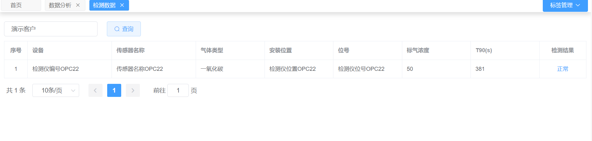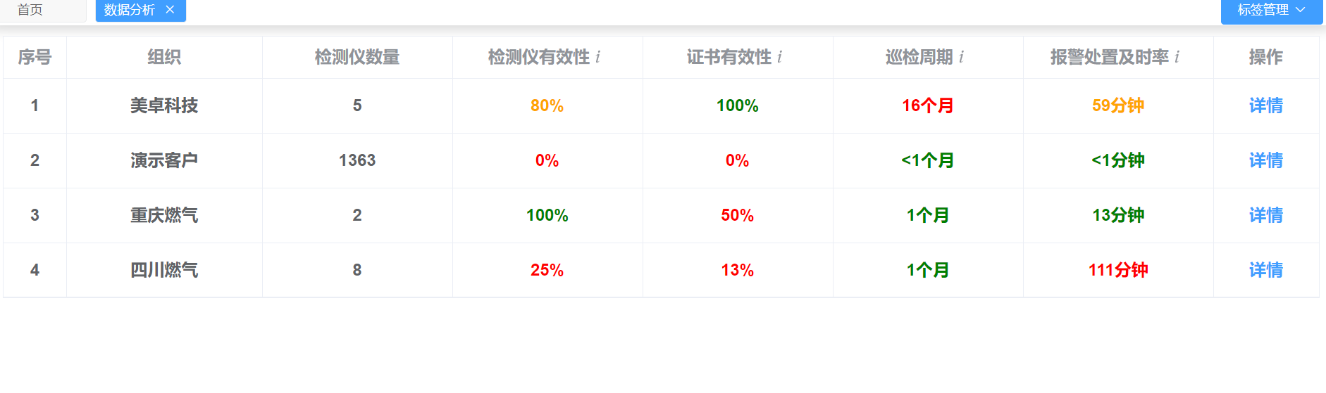 - 点击“详情”跳转到计量管理——检测数据页面查看该组织的检测数据