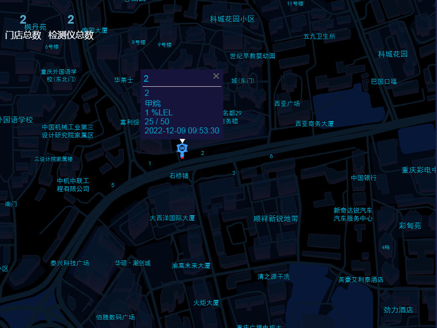 - 鼠标移入检测仪图标后显示该检测仪下传感器的实时信息。