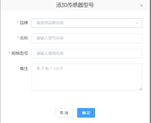 选择设备品牌 名称 (必填) 规格型号 (必填) 备注信息